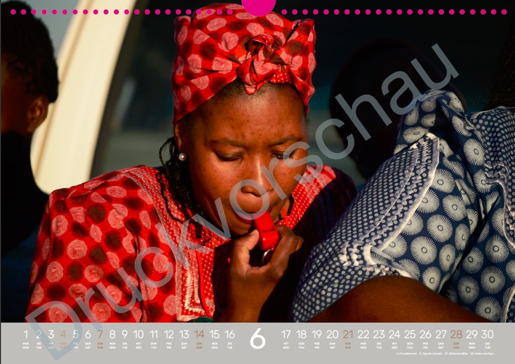 Unser Kalender zeigt in diesem Jahr besonders viele selbstbewusste Frauen und Mädchen aus eSitjeni, wie sie leben, wie sie feiern.